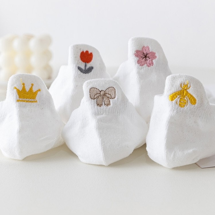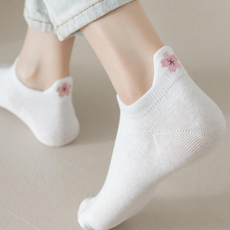 4계절 내내 착용하기 좋은 여성 감성 자수 포인트 발목양말 5P 세트