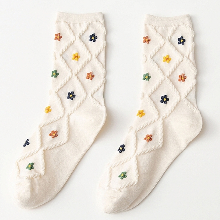 입체적인 다이아몬드&꽃 포인트로 귀여운 여성 발목 양말 5P 세트