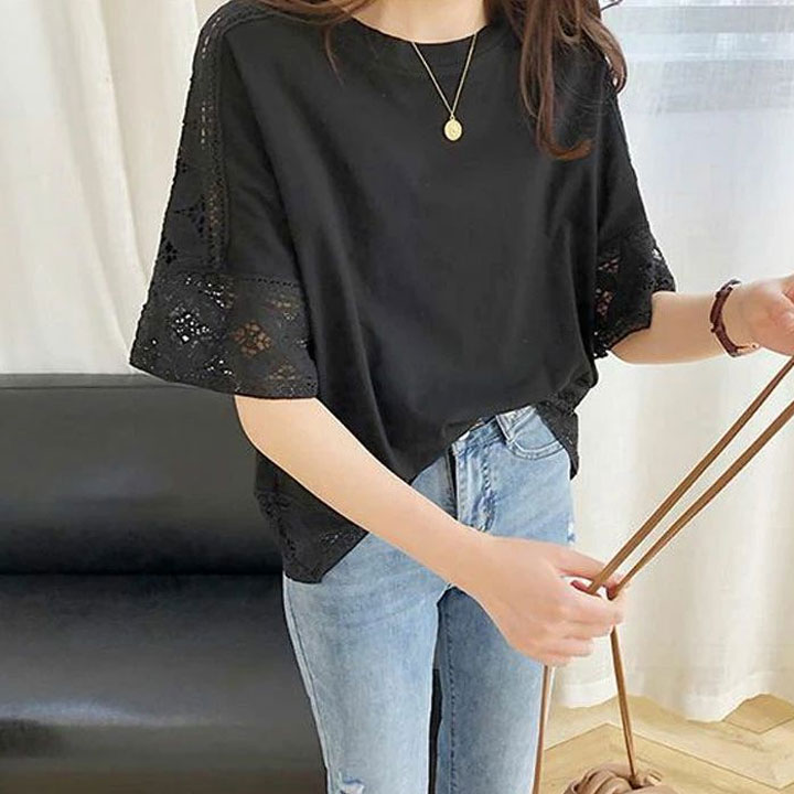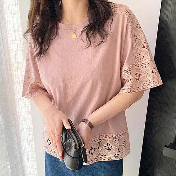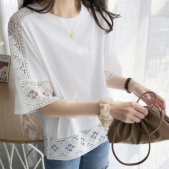 소매 레이스로 러블리하고 고급스러운 여성 반팔티