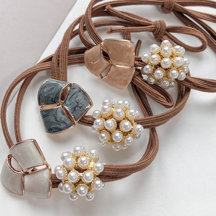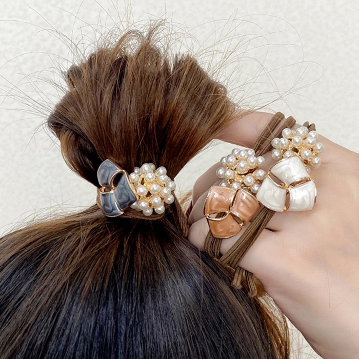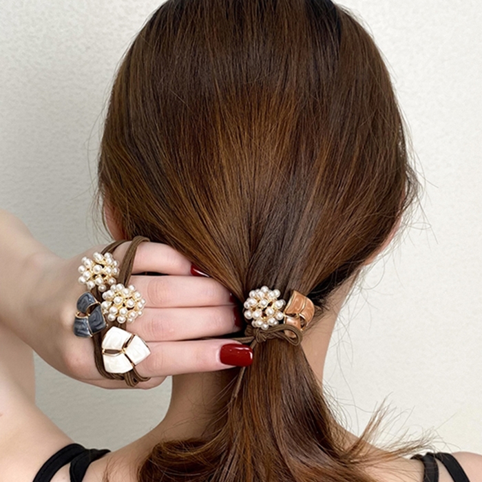 고급스러운 에나멜 플라워 펜던트 헤어끈 6P 세트