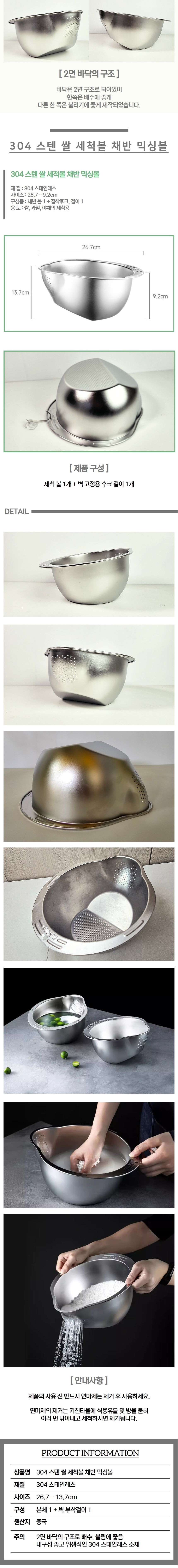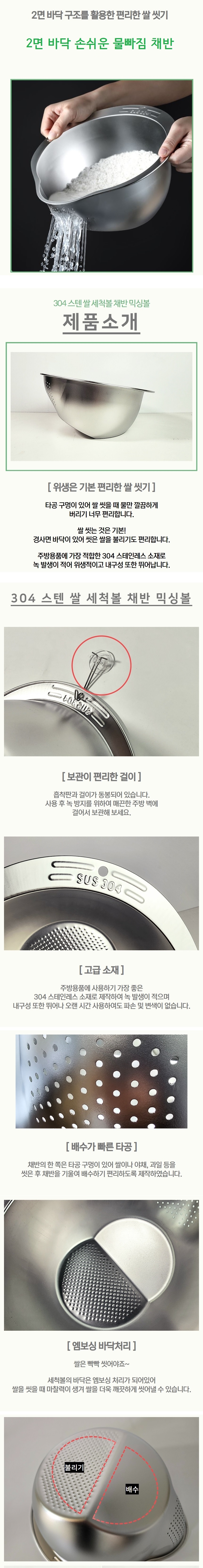 스텐 쌀 세척볼 쌀 씻는 볼 통 다용도 타공 물빠짐 채반