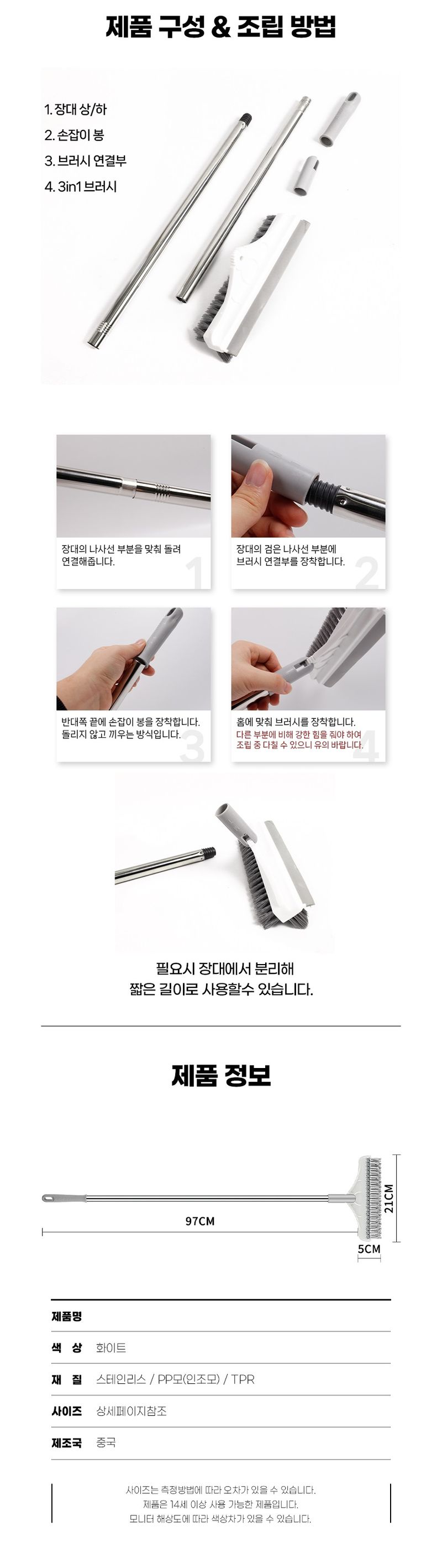 3in1 틈새 다용도 욕실 화장실 청소솔 스퀴즈 브러쉬