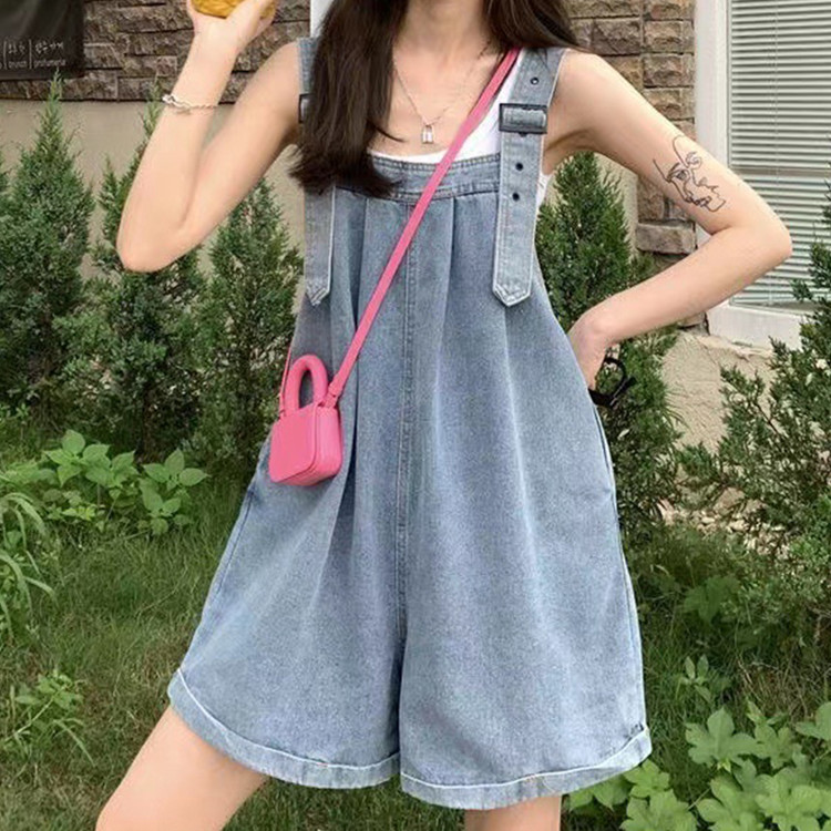 사랑스러운 여름 멜빵 와이드 청반바지
