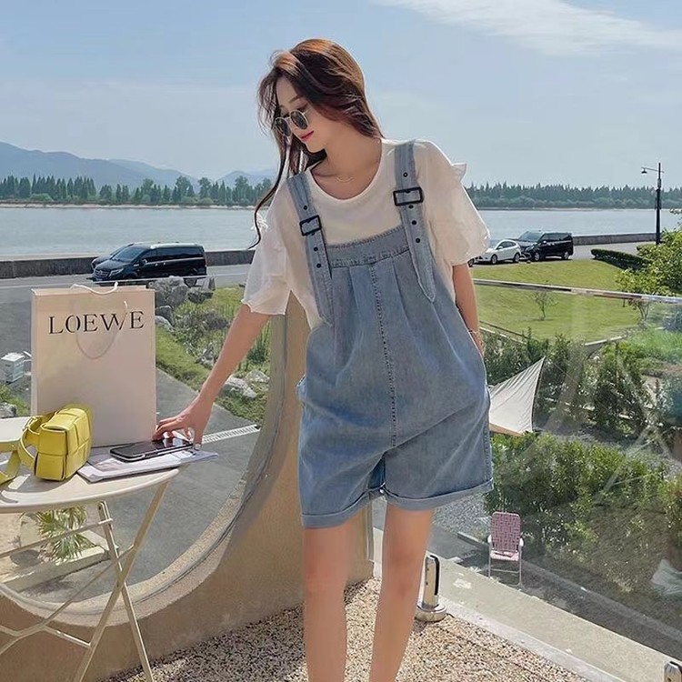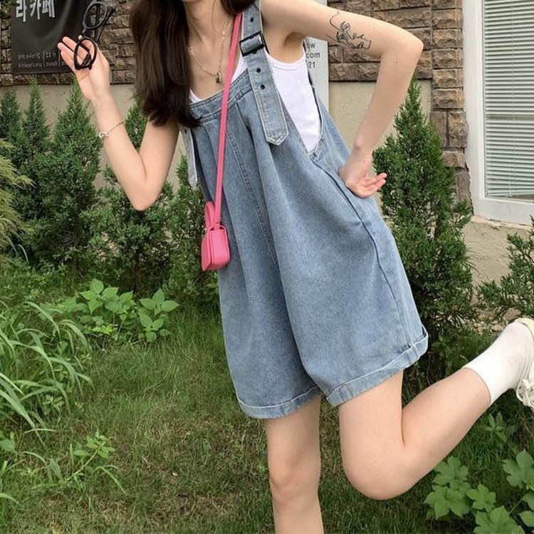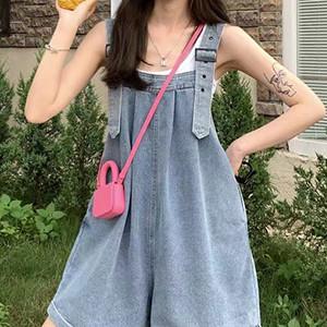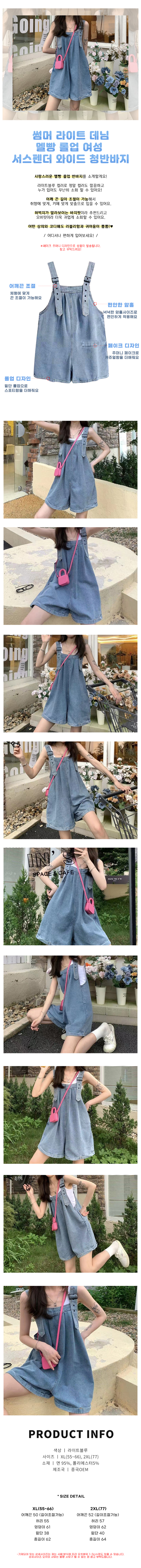 사랑스러운 여름 멜빵 와이드 청반바지
