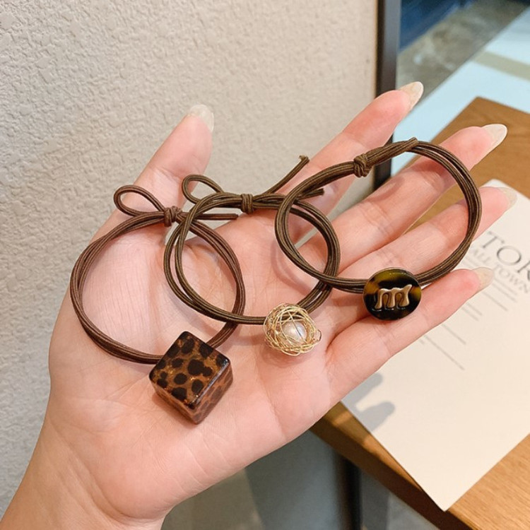 호피무늬 골드볼 짱짱한 머리끈 3p