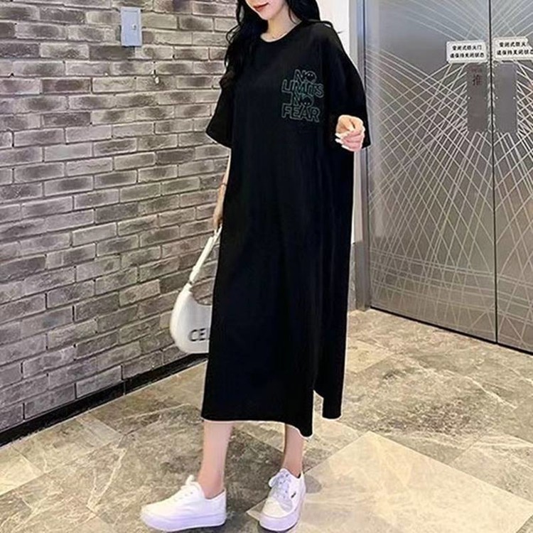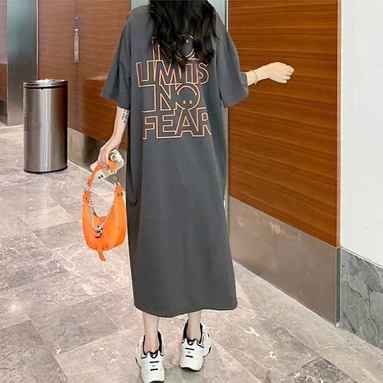 슬립 박시 캐주얼 여름 루즈핏 레터링 반팔 롱원피스