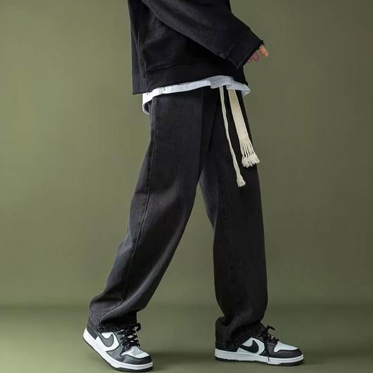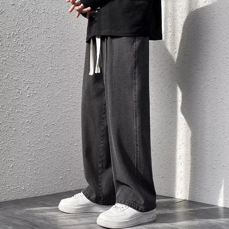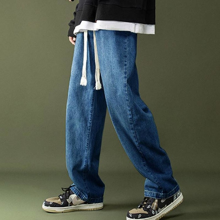 남성 와이드핏 캐주얼 밴딩 스트링 청바지