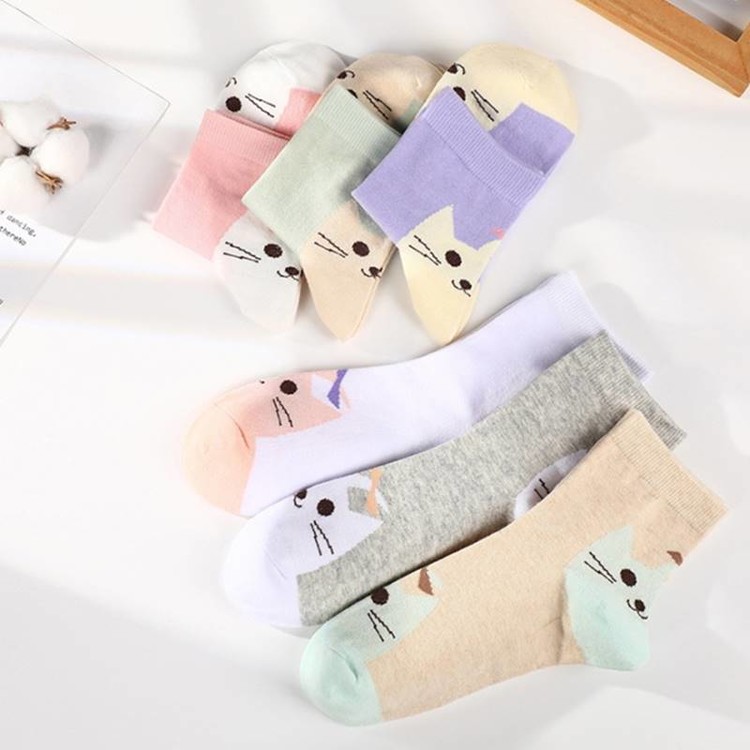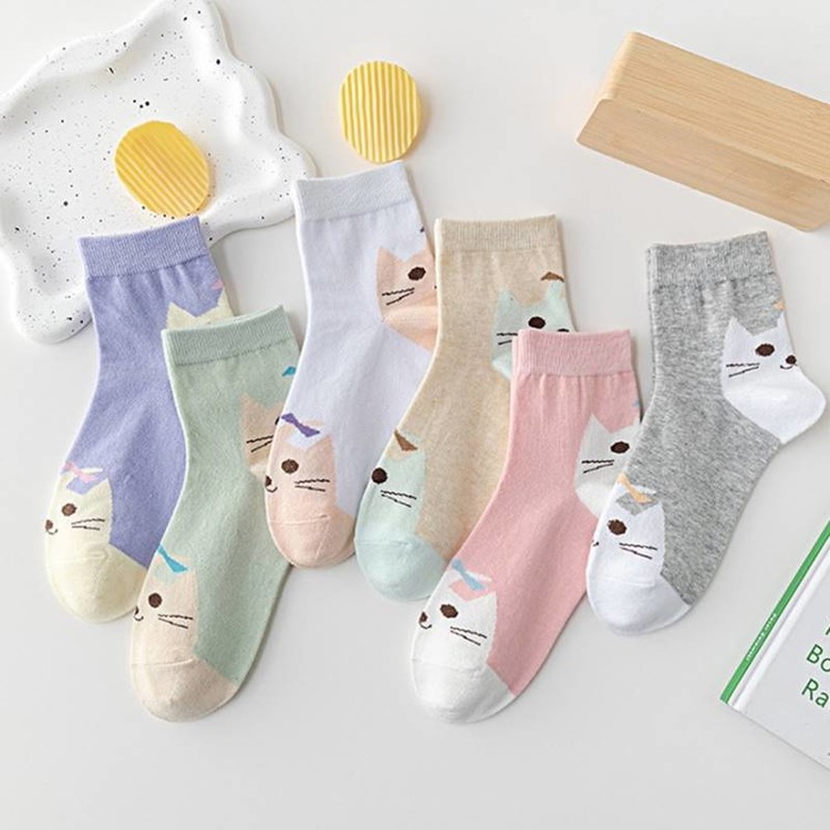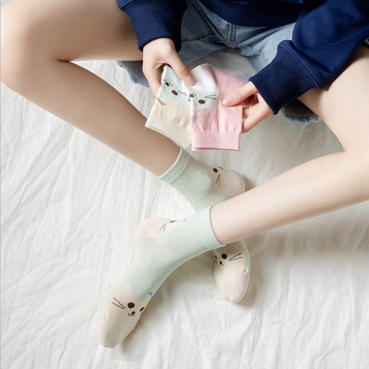 여성 키티 야옹 캐릭터 중목양말 5켤레