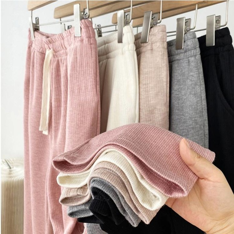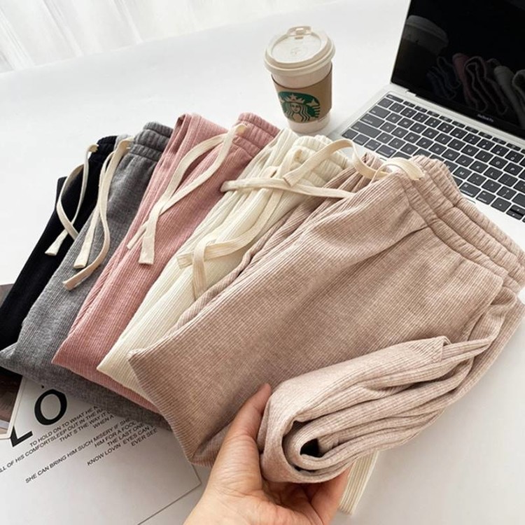 여성용 코듀로이 골지 밴딩 팬츠