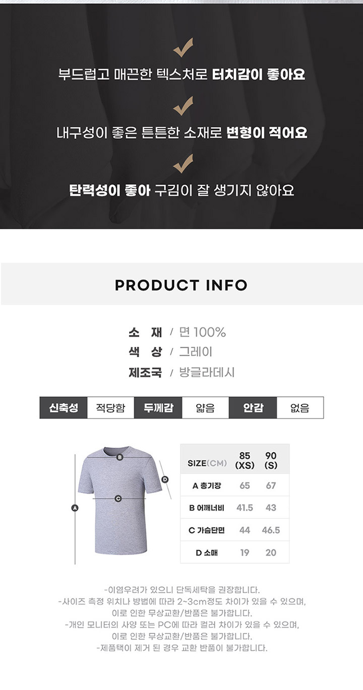부드럽고 매끈한 텍스처 무지 반팔 3장 세트