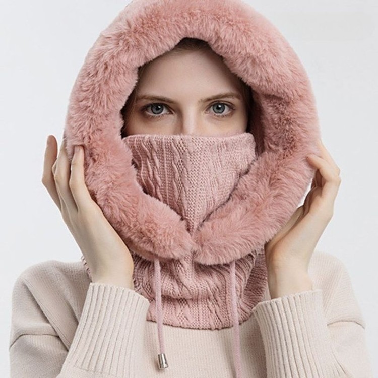 밍크퍼 니트 후드 넥워머